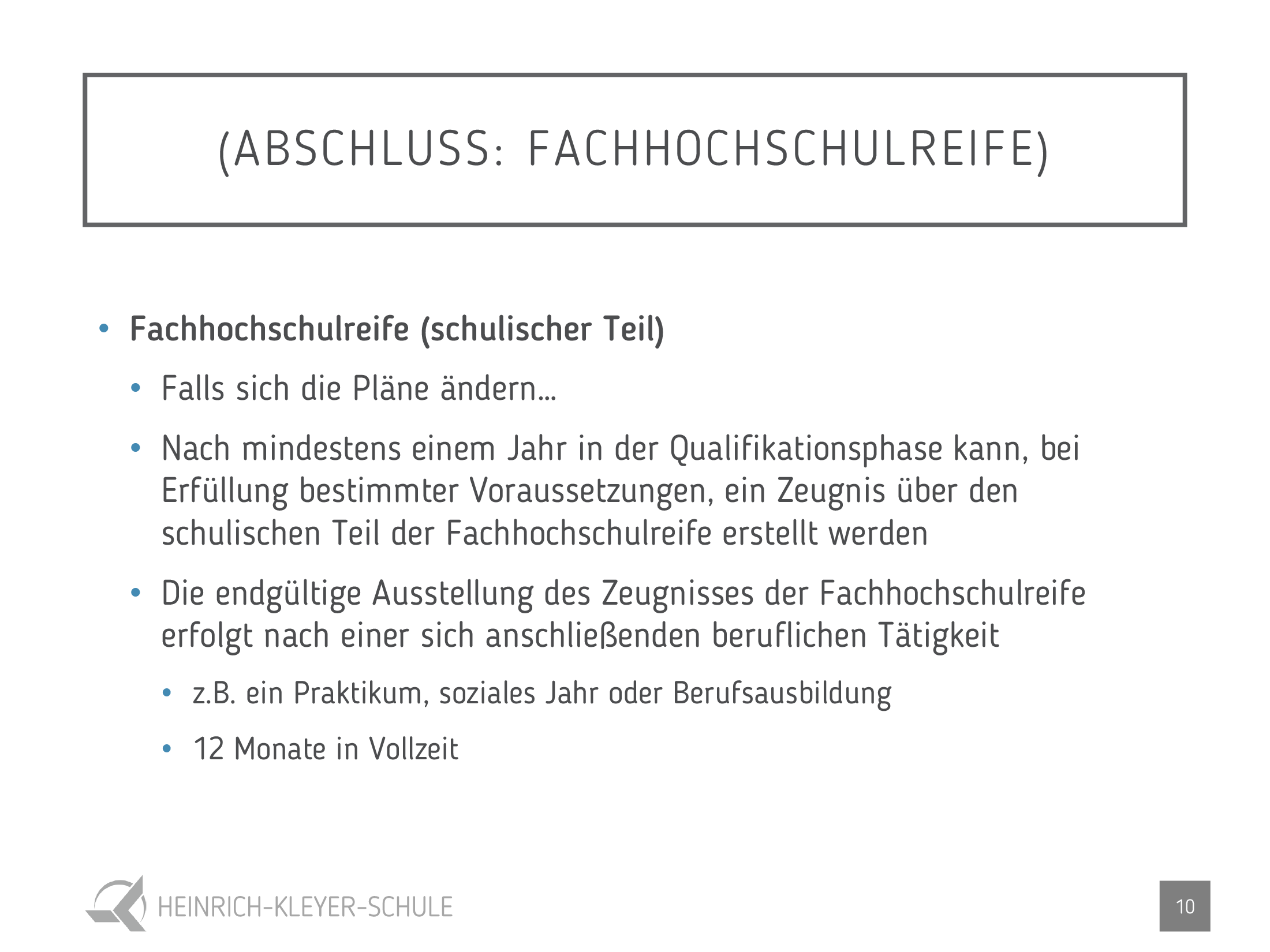 Schulischer Teil der Fachhochschulreife
