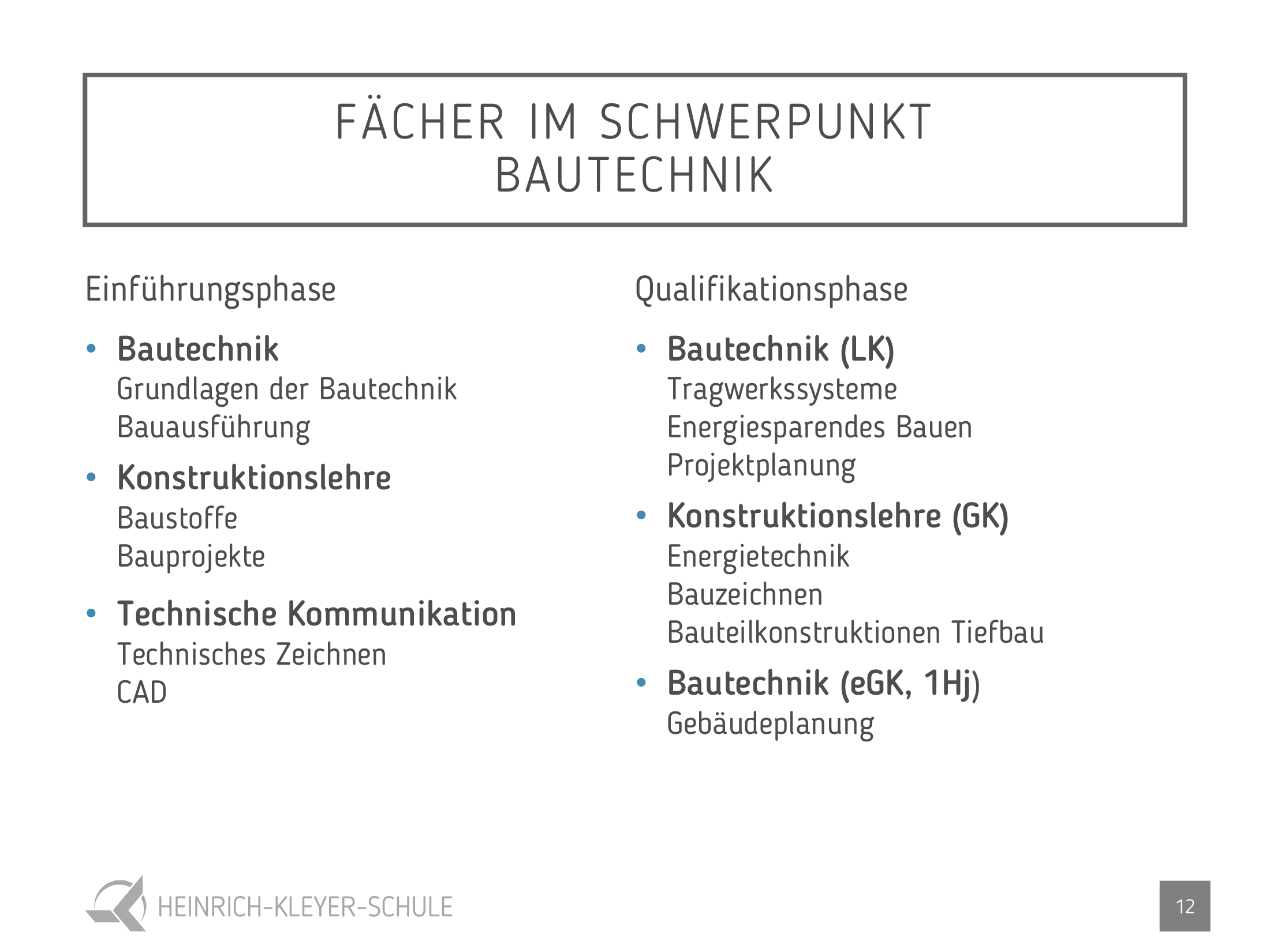 - Bautechnik (ab 2025) (Bautechnik, Konstruktionslehre, Technische Kommunikation)