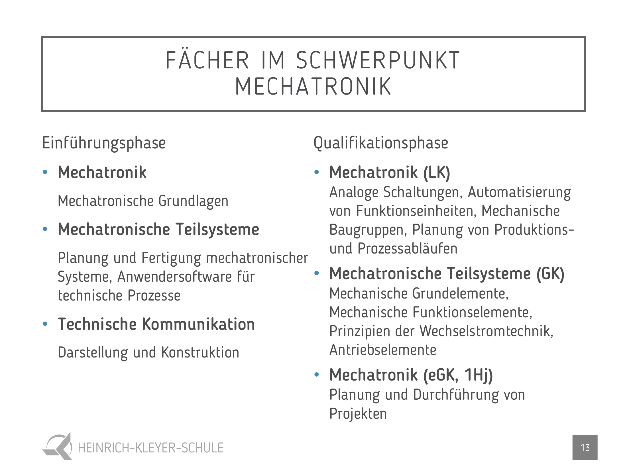 - Mechatronik (ab 2025) (Mechatronik, Mechatronische Teilsysteme, Technische Kommunikation)