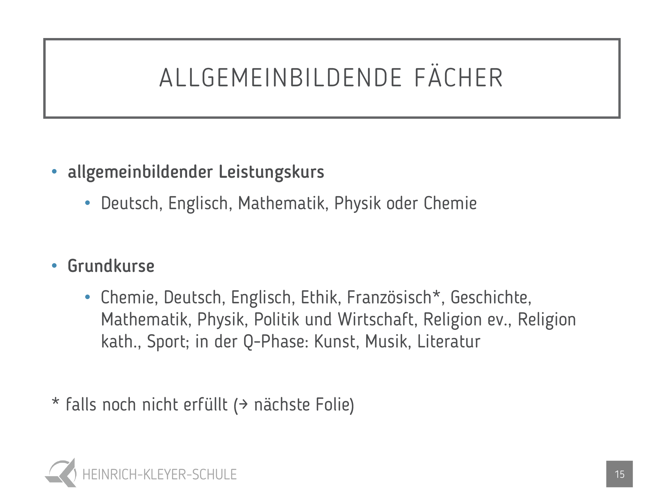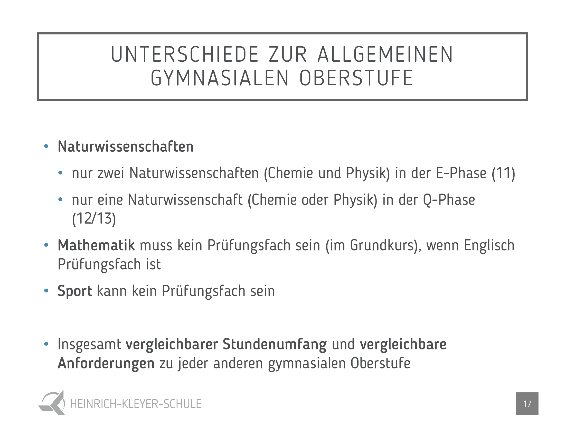 Als erstes Leistungsfach stehen Englisch, Mathematik, Physik oder Chemie zur Wahl.